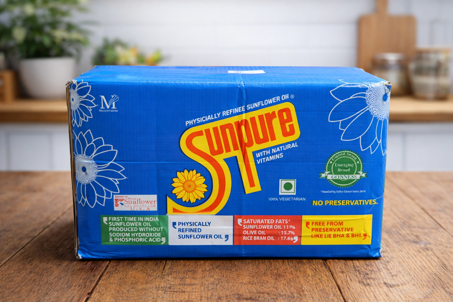 Sunpure Refined Sunflower Oil 1 Litre Oil Box 10 Pouch In One Box